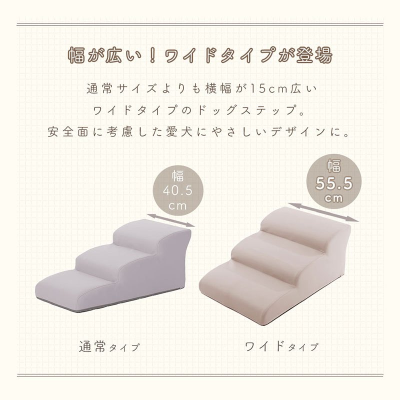 日本製 ドッグステップ 3段 階段 ソファ ペット用 犬 クッション 怪我防止 踏み台 犬用 ペットステップ 国産 ワンちゃんステップ 小型犬 PVC 合皮 高齢犬 ステップ シニア犬 プードル
